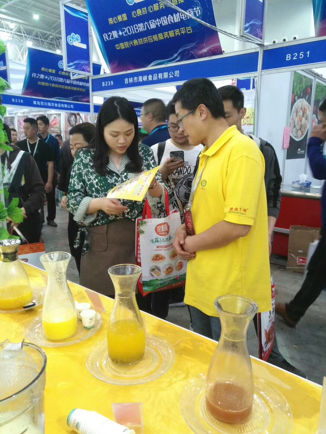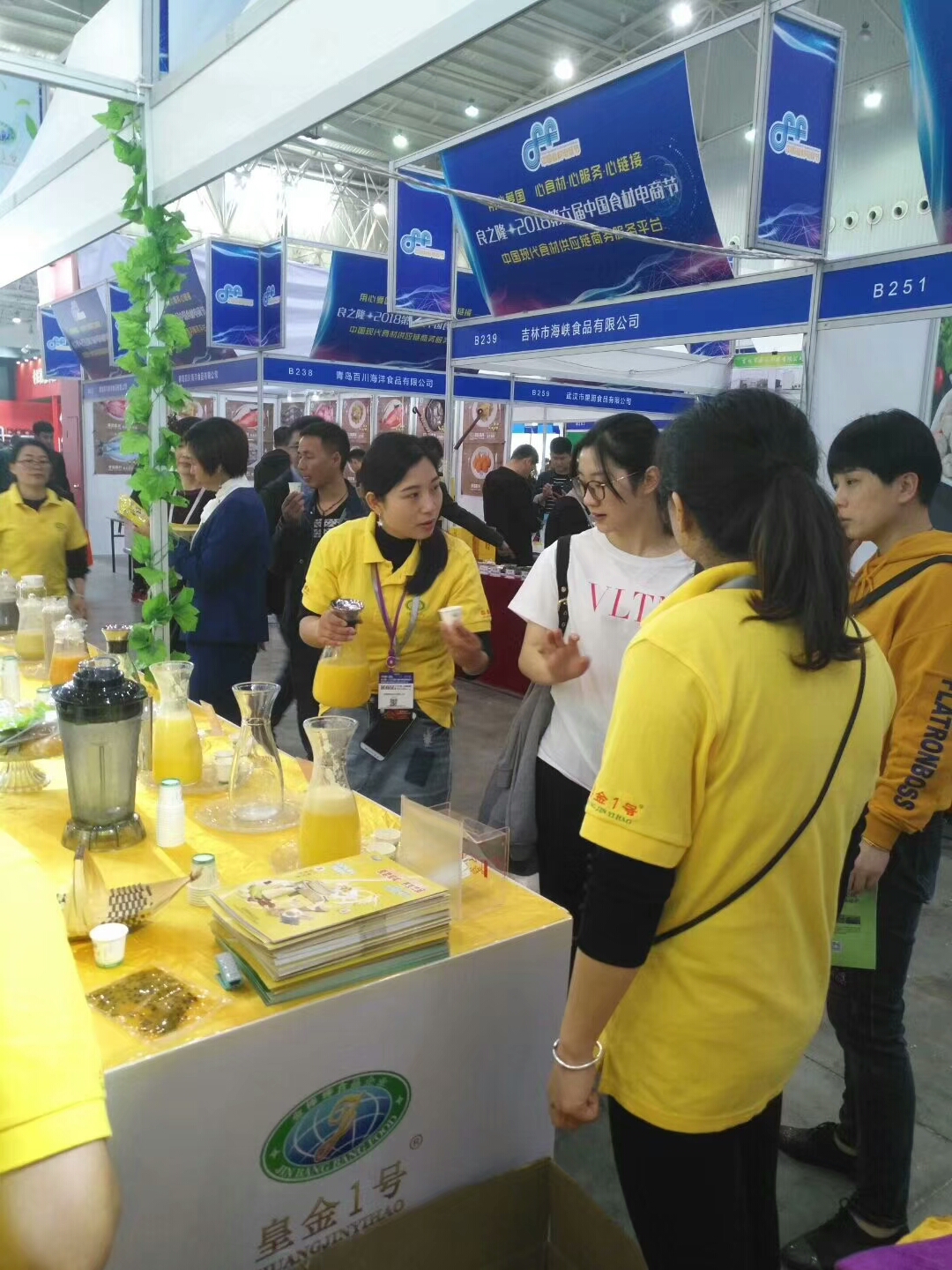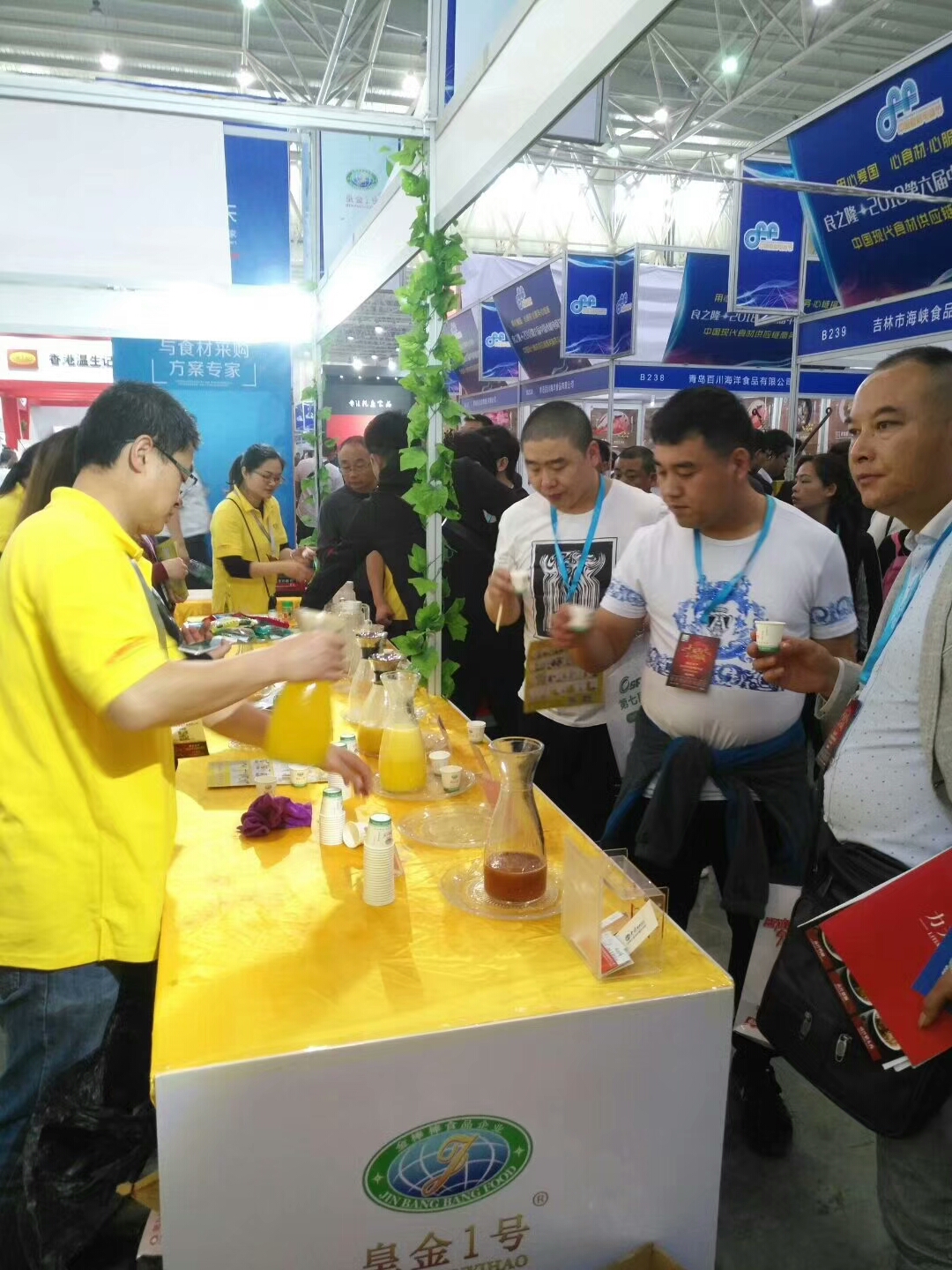 金棒棒食品企业在上海新国际博览中心参加良之隆·2018第六届中国食材电商节暨第四届中国餐饮业食材采购大会,现场展示皇金1号水果玉米系列及原磨现榨系列产品,展位位于A2馆B210-B211。