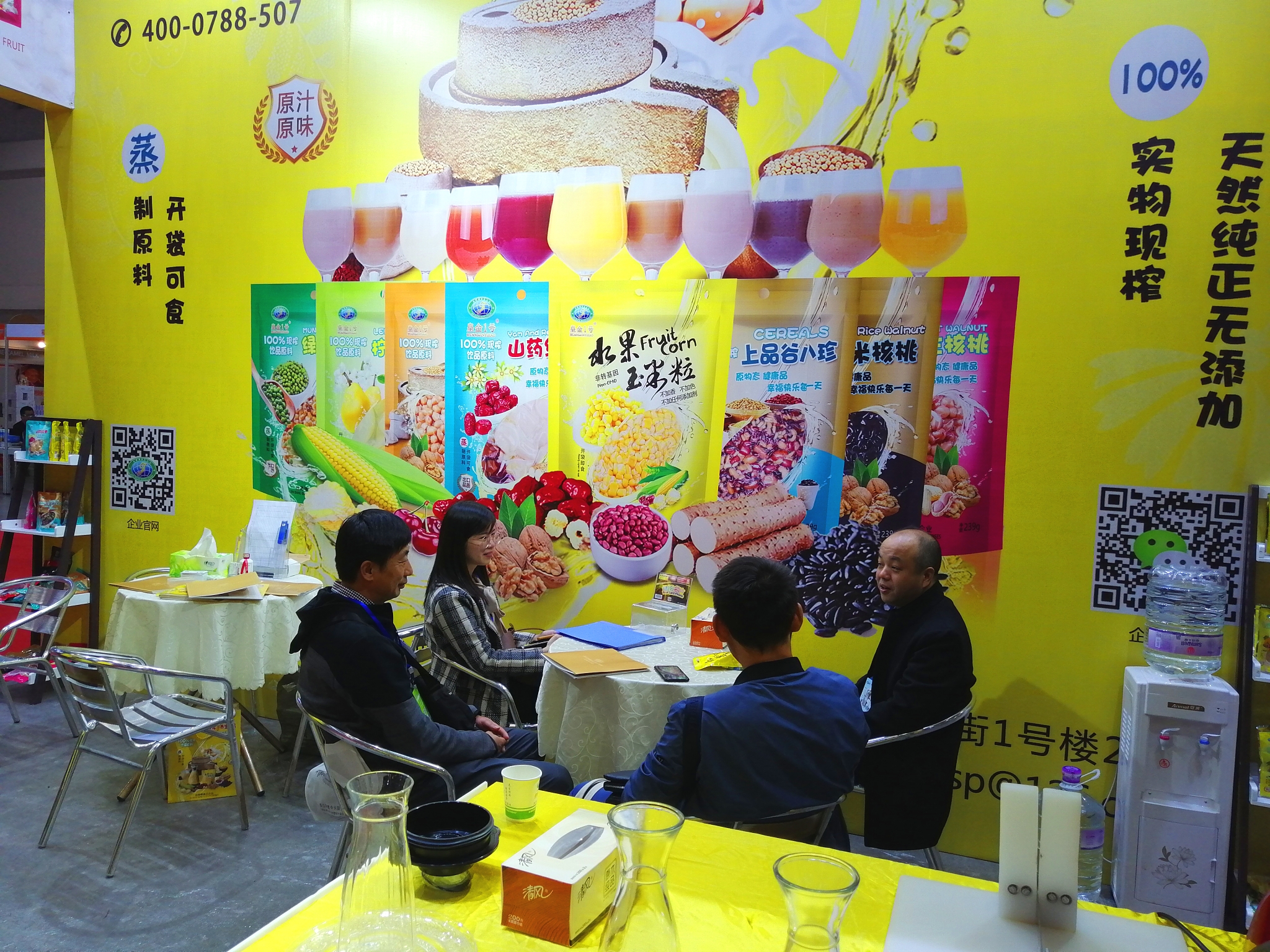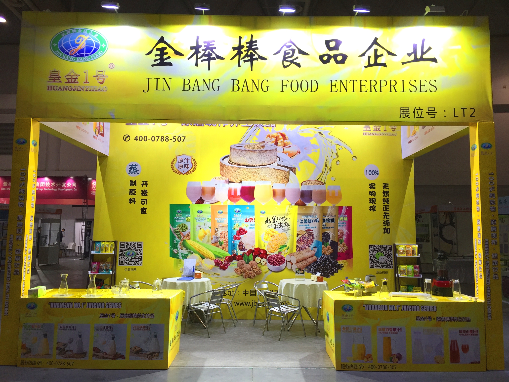 金棒棒食品企业在福州海峡国际博览中心参加2018福建餐饮食材博览会,现场展示皇金1号水果玉米系列及原磨现榨系列产品,展位位于2号馆LT2.
