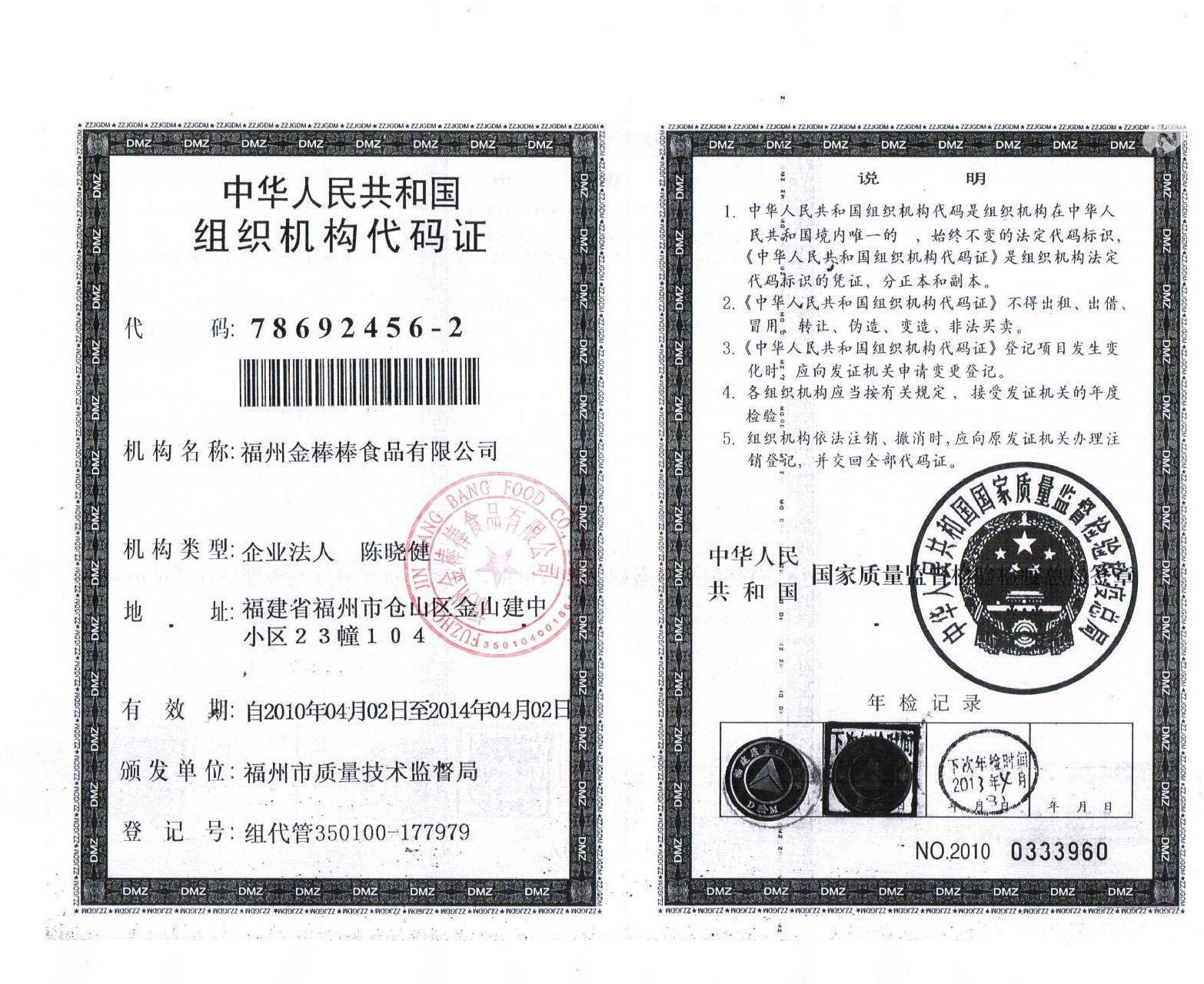 中华人民共和国组织机构代码证
