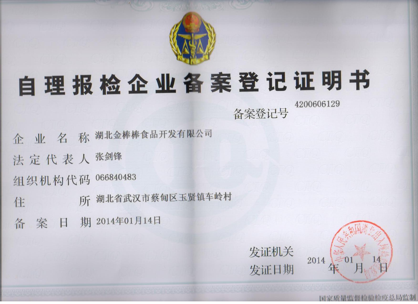 自理报检企业备案登记证明书