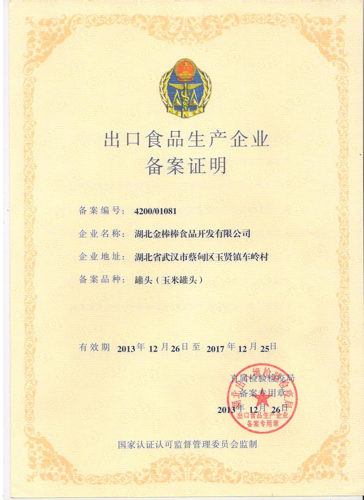 出口食品生产企业备案证明