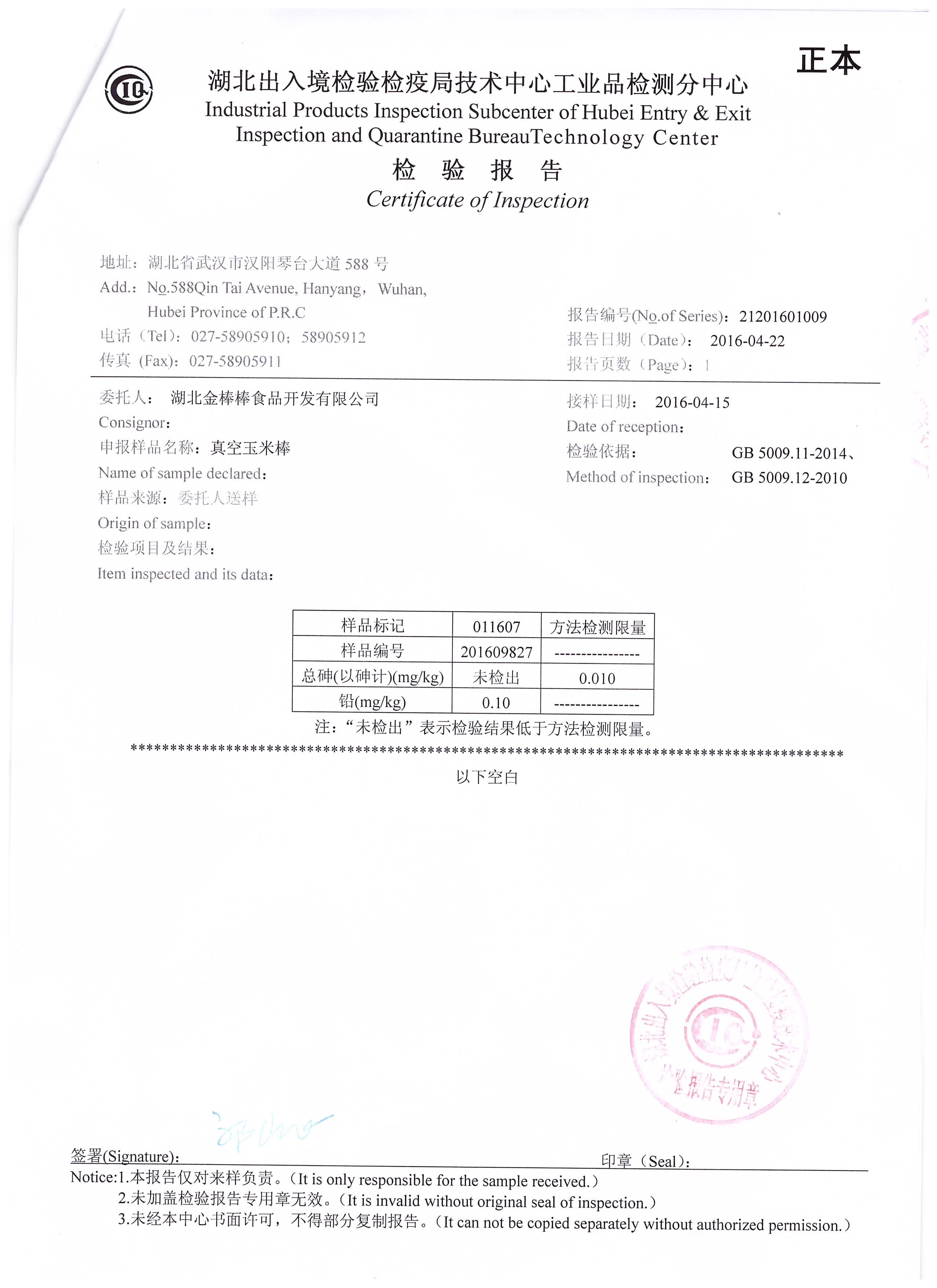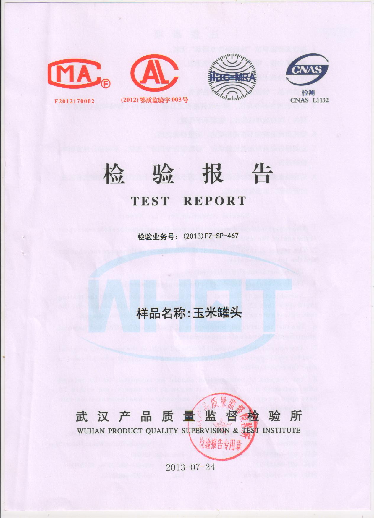 玉米罐头检验报告